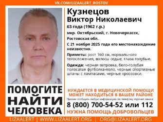 С прошлой пятницы, 21 ноября, в Новочеркасске разыскивают 63-летнего Виктора Кузнецова. Уже несколько дней местоположение мужчины неизвестно, сообщает поисковый отряд «ЛизаАлерт».