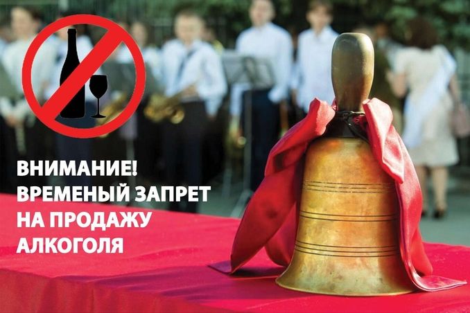Напоминаем, что днями запрета на розничную продажу алкогольной продукции в соответствии с региональным законодательством являются даты выпускных, день последнего звонка и день выдачи аттестатов о среднем общем образовании, а также Международный день защиты детей 1 июня и День знаний 1 сентября.