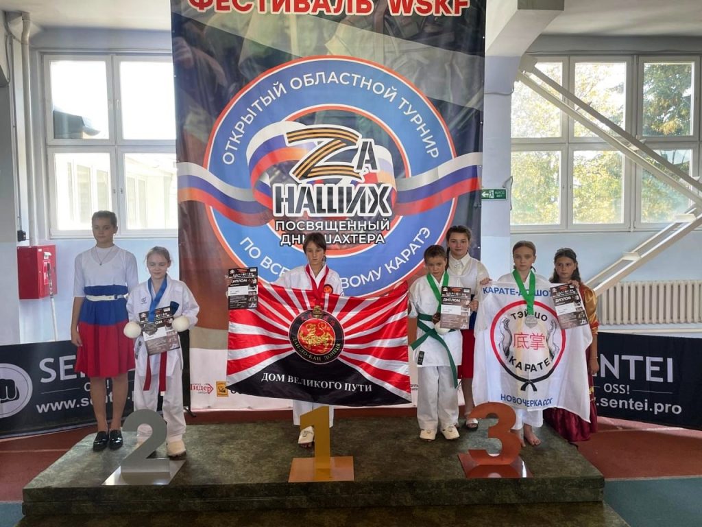 Спортсмены клуба «Тэйшо» приняли участие в межрегиональном турнире по WSKF в городе Шахты. По итогам выступлений новочеркасские каратисты завоевали 11 медалей: две золотых, две серебряных и 7 бронзовых.