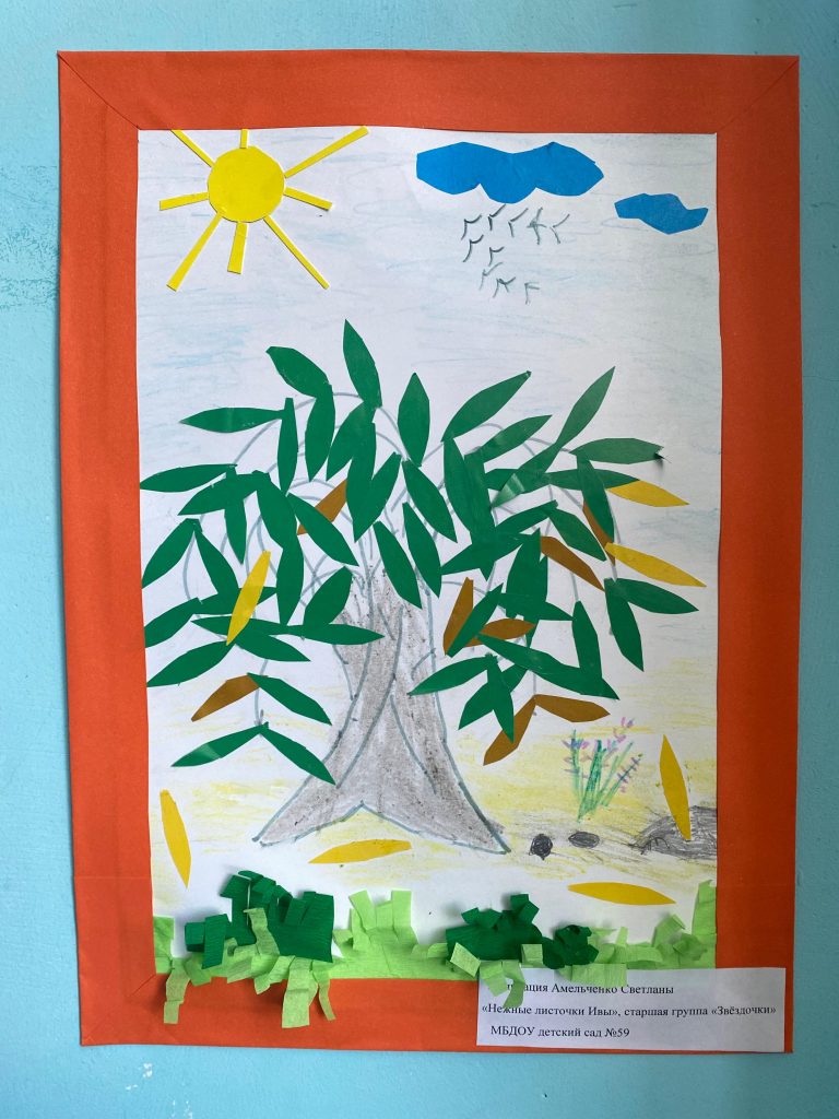В поддержку ивы-победительницы воспитанники детского сада № 59 Новочеркасска создали целую картинную галерею с изображением «Бабушки Ивы». Не осталась в стороне и младшая группа: ребята с воспитателем сделали аппликацию дерева из цветной бумаги.