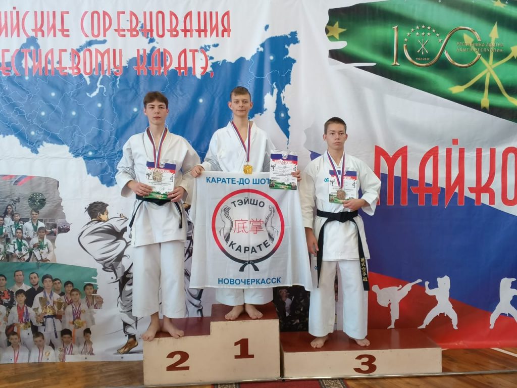 Воспитанники новочеркасского клуба «Тэйшо» вновь продемонстрировали мастерство и волю к победе. На всероссийских соревнованиях по всестилевому карате в Майкопе наши спортсмены в составе сборной Ростовской области заняли первое место в командном зачете. Также копилки спортсменов пополнились личными достижениями.