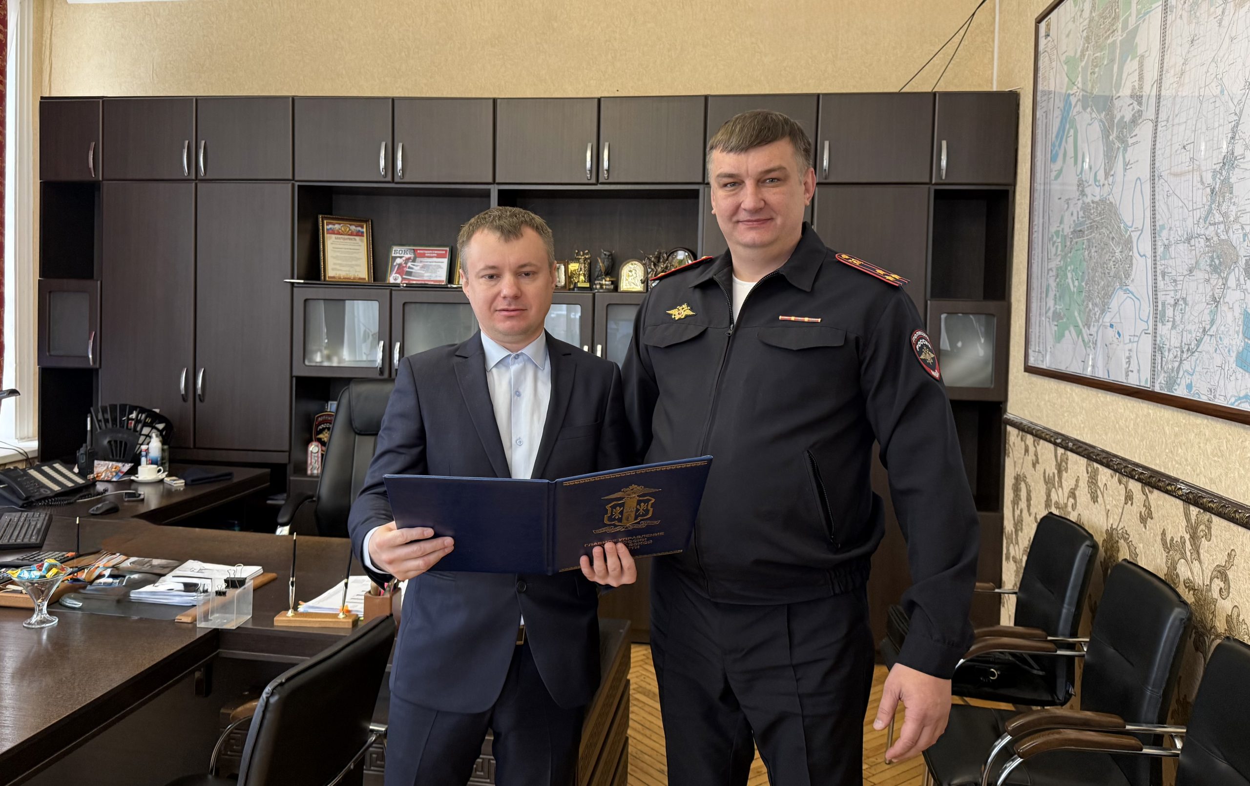 Приветственный адрес за подписью начальника донского главка директору «Новочеркасских ведомостей» Илье Лобода вручил Сергей Белецкий, начальник МУ МВД России «Новочеркасское».