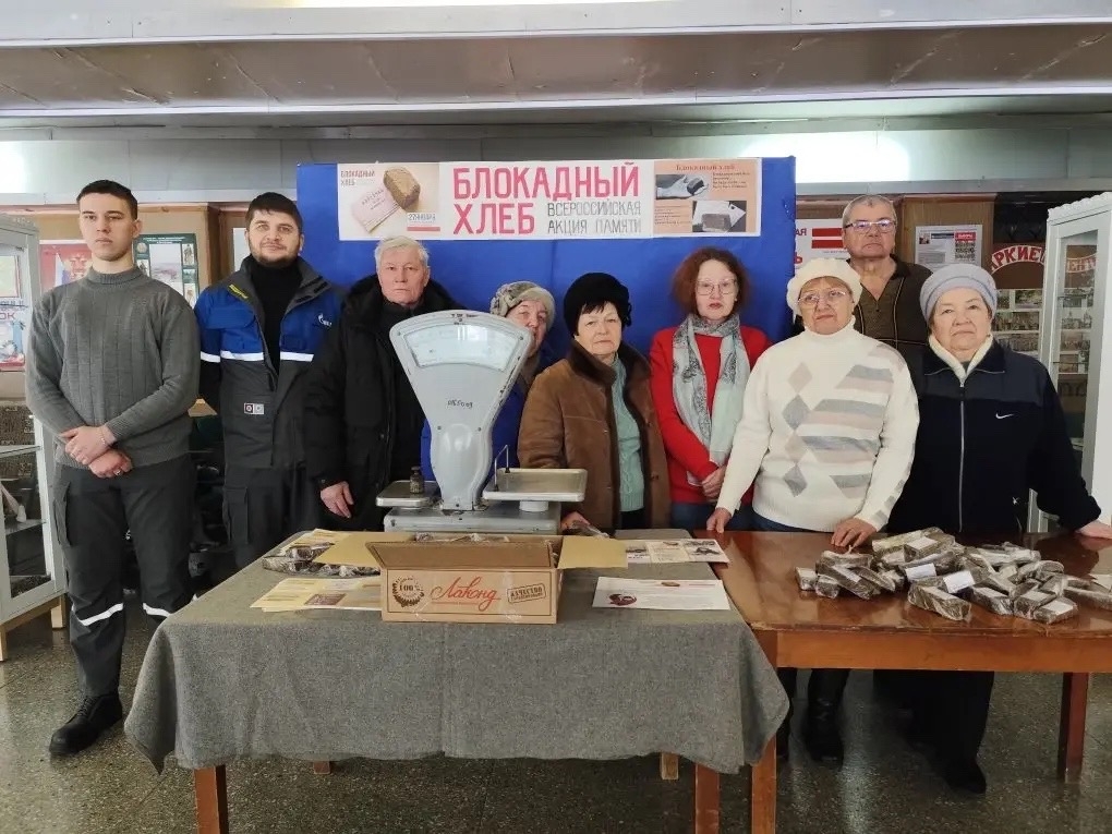 Первичная профсоюзная организация, Совет ветеранов и Совет молодежи Новочеркасской ГРЭС организовали в вестибюле ДК импровизированный пункт выдачи. Центром внимания стал символ акции- 125-граммовый кусочек хлеба, который участники получили вместе с карточками о блокадных годах.