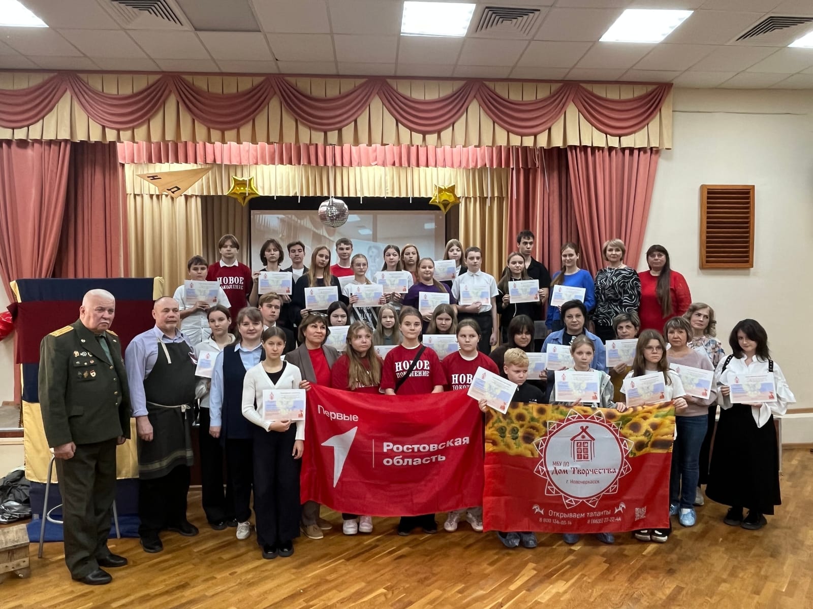 14 ноября в актовом зале школы №23 прошел областной мастер-класс «Восславим героев Отечества». Это событие стало частью патриотической акции, стартовавшей 12 июня в Аксае. В мероприятии участвовали ученики и педагоги школ и домов творчества Ростовской области, представители ветеранской организации микрорайона Донской и союза казаков-воинов России и зарубежья. Организаторами выступили управление образования Новочеркасска, Дом творчества, Южный федеральный университет и общественный совет ветеранов Аксайского района.