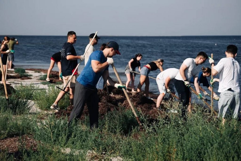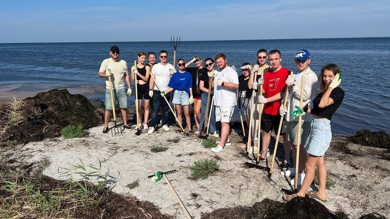 В один из дней образовательной смены «Молодые парламентарии поколения Z» активисты молодежного парламента Новочеркасска приняли участие в субботнике на берегу Азовского моря.