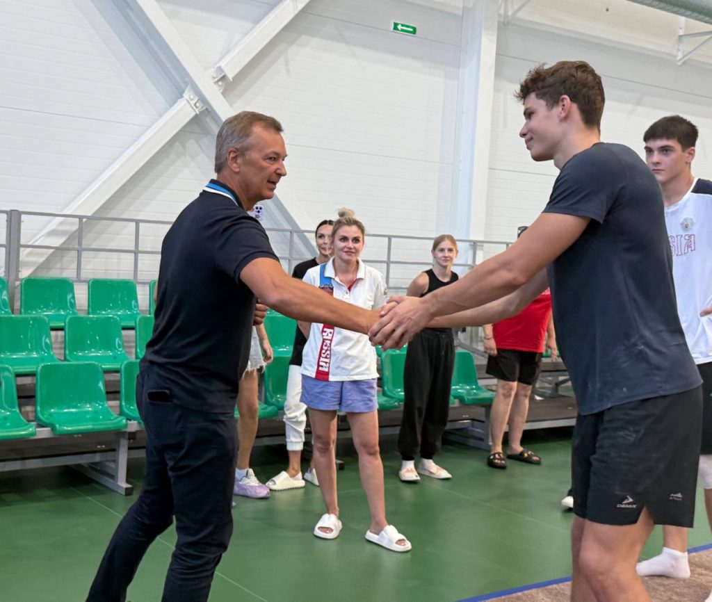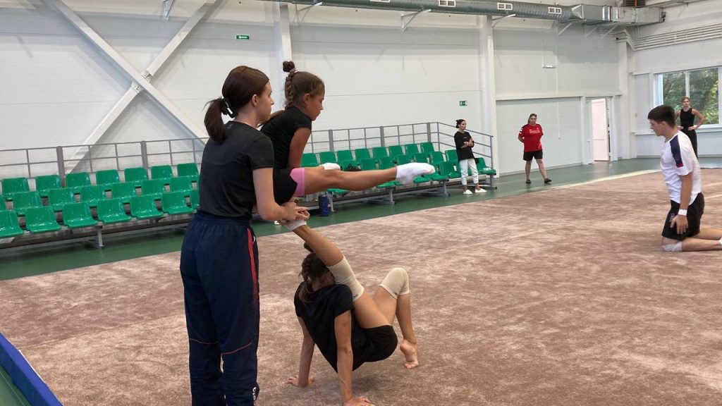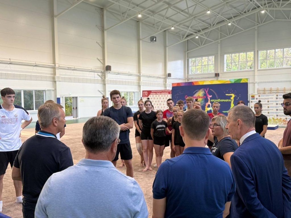 На стадионе и в ФОКе проходят тренировки в разных видах спорта. Одну из них – по спортивной акробатике – посетили Андрей Яцкин и Артем Хохлов. О будущих спортивных достижениях сенатор поговорил с членами сборной России Вадимом Алексюком, Артёмом Шереметовым, Антоном Мельником.