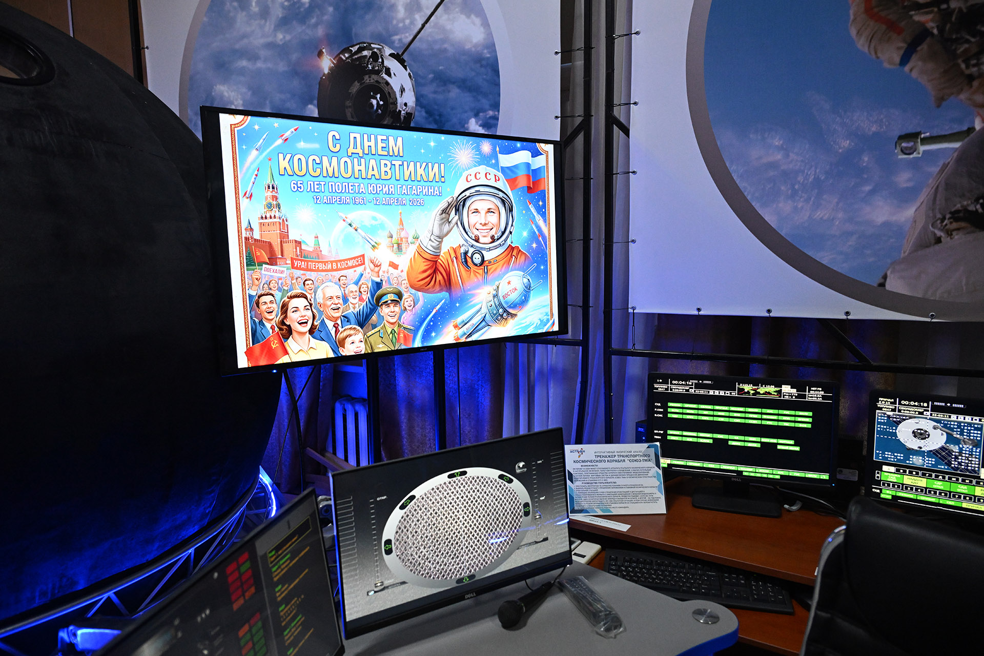 В нашем демонстрационном зале стоят образцы пилотируемых кораблей 3-х поколений: корабль «Восток», на котором был совершен первый полет в космос, рядом – транспортный корабль «Союз», находящийся в эксплуатации в настоящее время, а далее – перспективный транспортный корабль, который полетит к Российской орбитальной станции. Это наглядный пример развития космической отрасли, а также участия Центра тренажеростроения в подготовке экипажей к полетам на создаваемых коллективом предприятия тренажерах.