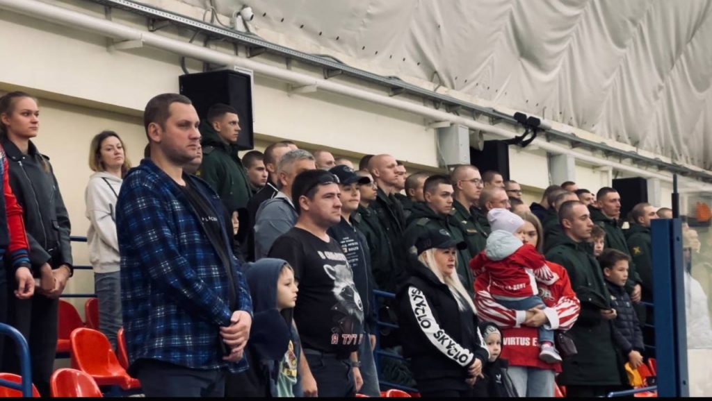 Утро в Ледовом дворце началось с торжественной встречи почетных гостей. Для болельщиков и семей военнослужащих выступили ансамбли казачьей песни «Родник» и «Донюшка».