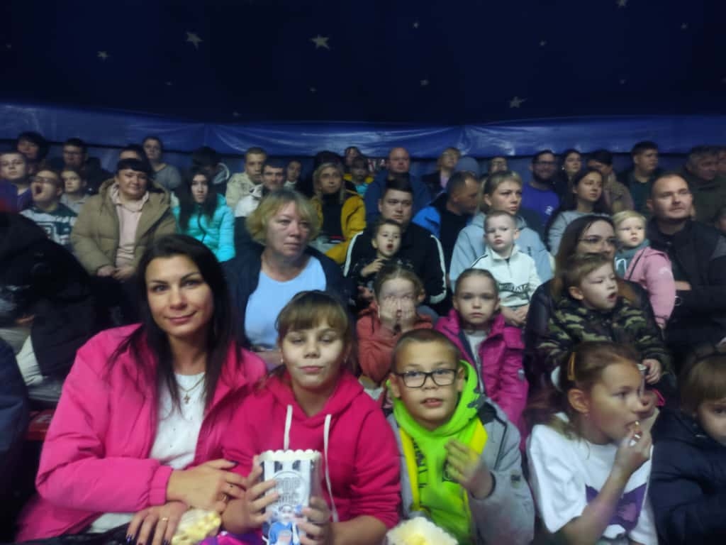 В просторном цирковом шатре детям показали шоу с участием канатоходцев, воздушных гимнастов, фокусников-иллюзионистов и веселого клоуна.