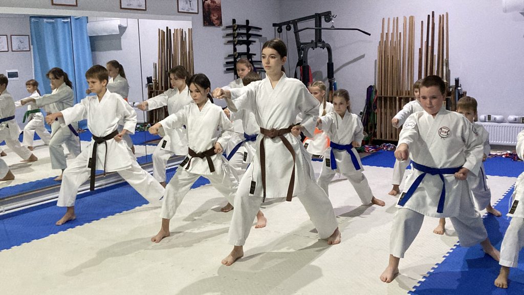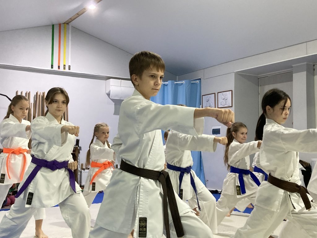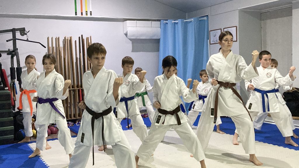 «Сначала разминка, потом базовая техника, ката. И, соответственно, те, кто работает в кумите, еще потом занимаются кумите. Но мы тут еще взяли раздел кобудо. Кобудо — это работа с оружием. Соответственно, в конце каждого занятия, когда тело уже разогретое, связки и суставы, потому что с оружием работать очень тяжело – мы работаем 15-20 минут. Изначально изучается бо. Бо — это шест. Шест считается самым простым, но и самым сложным оружием. Тот, кто овладел бо, тот овладеет и любым другим оружием»,- рассказывает сэнсэй.