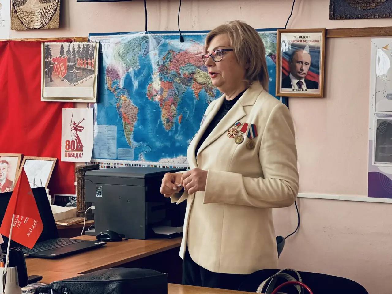 Лекцию, посвященную Героям Великой Отечественной войны, провела заместитель начальника отдела культурно-массовой работы городского совета ветеранов Елена Морозова.