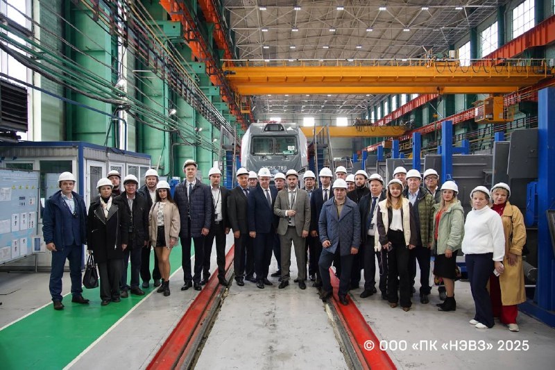 Визит начался с экскурсии по производственной площадке электровозостроительного завода, провел которую генеральный директор НЭВЗа Евгений Гридасов. Гости побывали в заготовительном цехе КСК МК, сварочно-кузовном и тележечном цехах, на участке сборки кабин аппаратно-механического цеха и в электровозосборочном цехе.