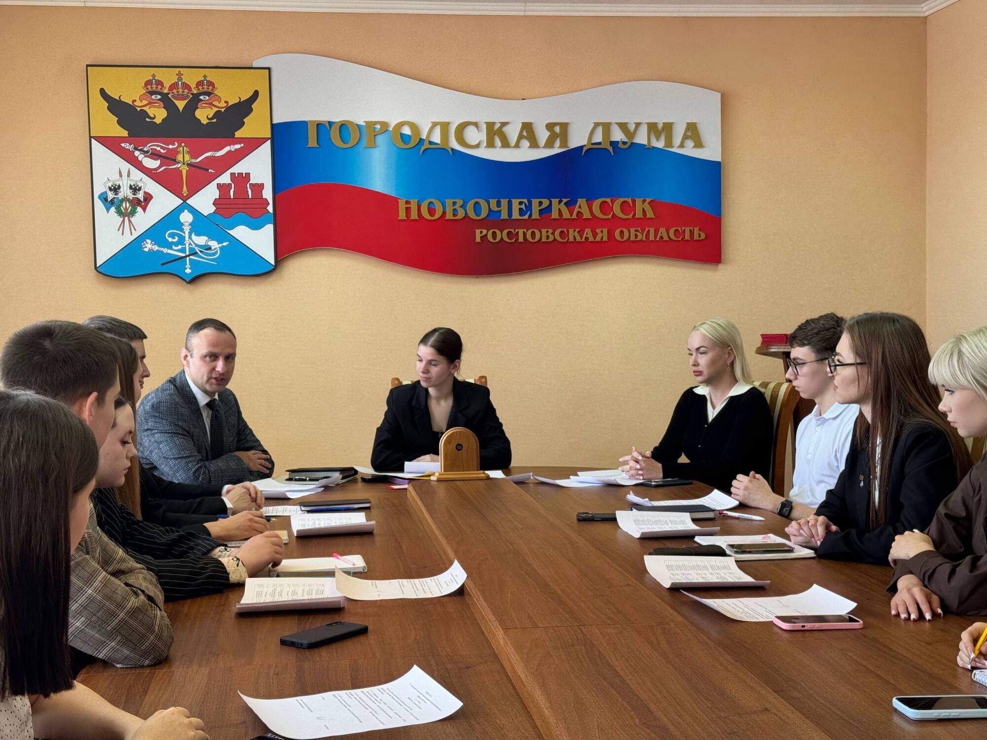 На очередном заседании молодежной администрации Новочеркасска подвели итоги 2025 года. Первый заместитель градоначальника Константин Хмельницкий и начальник отдела по работе с молодежью Дарья Хмельницкая заслушали отчет о проделанной работе.