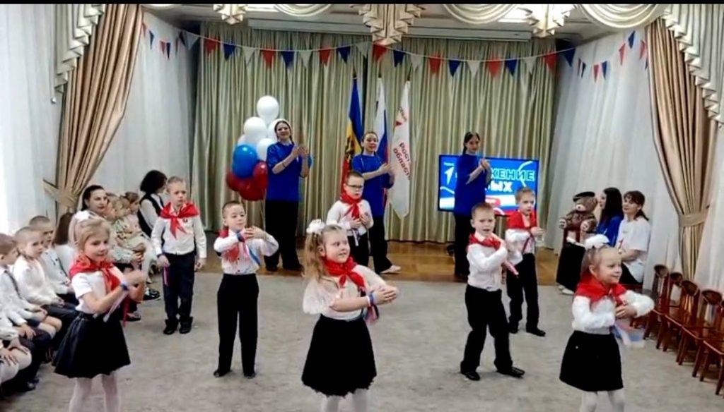 Малыши торжественно пообещали стремиться к знаниям и любить Родину. В честь этого они получили значки и галстуки участников движения, символизирующие честь и стремление быть лучшими.