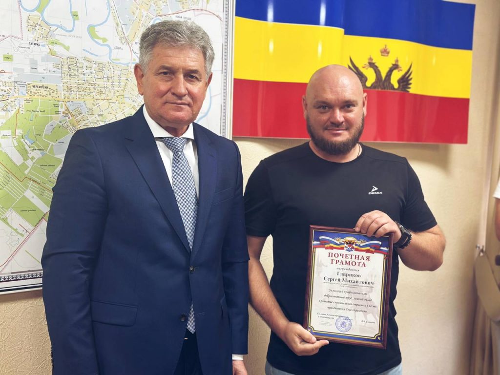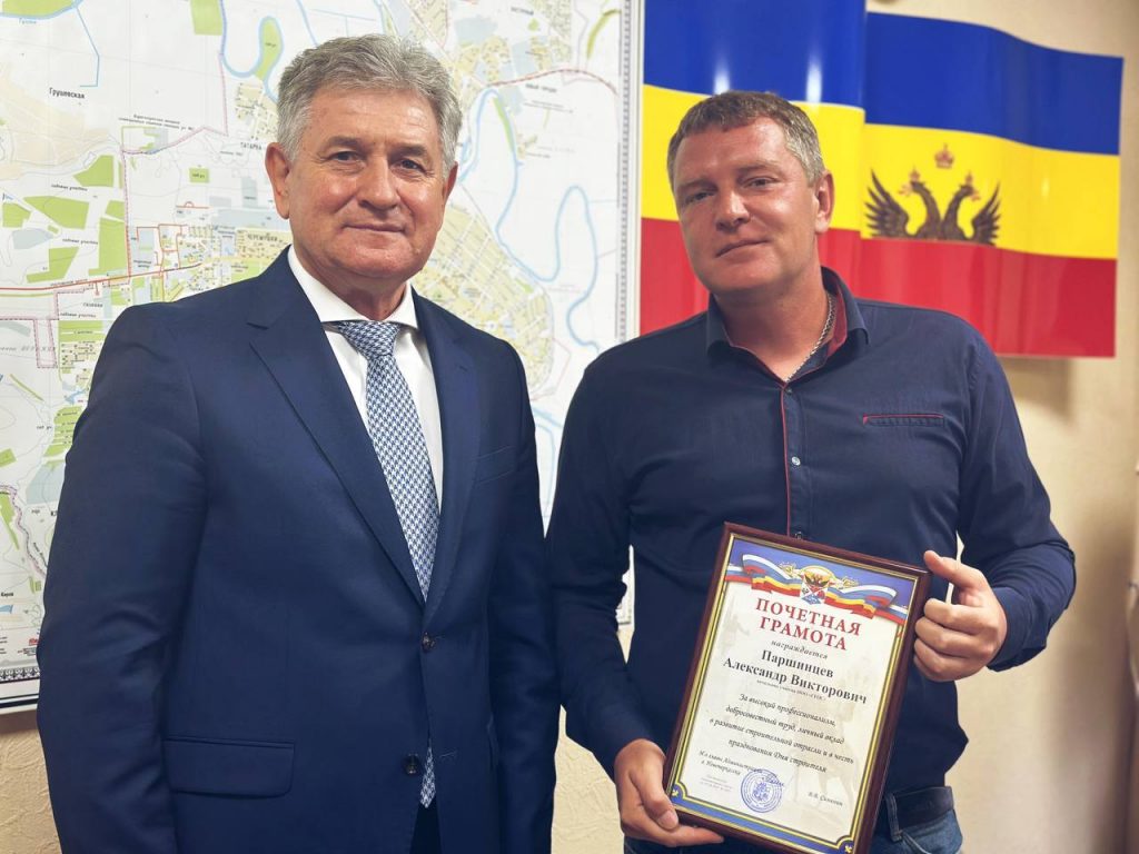 Лучшим представителям строительной отрасли градоначальник вручил почетные грамоты от администрации и городской Думы.