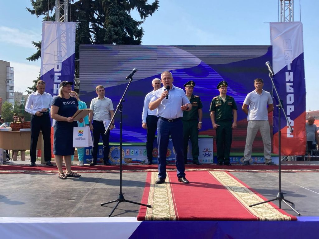 Мероприятие стартовало в 9 утра. На трибунах собрались спортсмены, военнослужащие, тренеры, ветераны спорта и горожане. На поле разместились яркие спортивные площадки для детей и взрослых: можно было попробовать свои силы в различных дисциплинах, запустить дрон, познакомиться с образцами воинского оружия, а рядом угощали ароматными блюдами из полевой кухни.