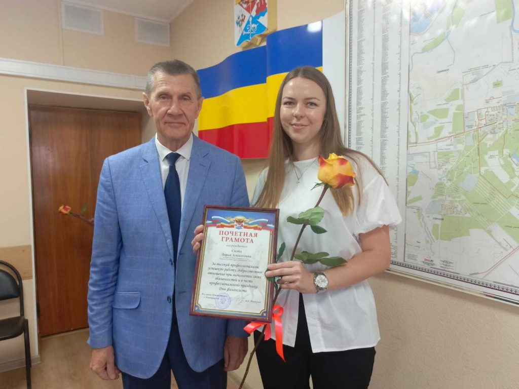 В честь праздника и за высокий профессионализм градоначальник вручил грамоты администрации четырем специалистам.