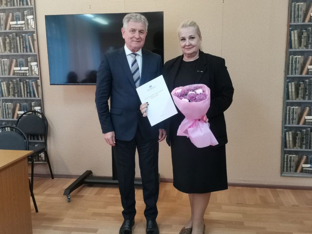 Из рук парламентария благодарственное письмо от депутата Государственной Думы Виктории Абрамченко «За активную и результативную образовательную деятельность» получила директор школы Татьяна Романова. Также сотрудники школы были отмечены благодарностями городской Думы за многолетний профессиональный труд.