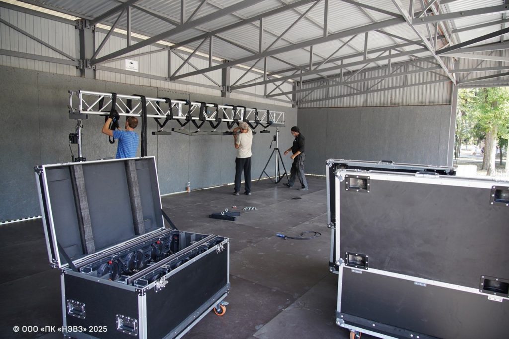 В парке Электровозостроителей Новочеркасска торжественно открыли обновленный амфитеатр, который благодаря новому установленному оборудованию, можно использовать как летний кинотеатр.