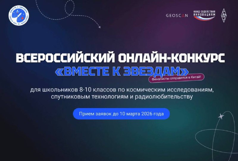 Начался прием заявок на всероссийский конкурс «Вместе к звездам» для учащихся 8–10 классов и студентов колледжей в возрасте 14-17 лет, его проводят Фонд содействия инновациям и ГК «Геоскан»при поддержке Движения Первых. Итогом проекта станет учебная поездка на космическую смену в КНР. Там российские участники вместе со сверстниками из Китая будут работать соспутниковыми данными, решать инженерные задачи и готовить совместные проекты.