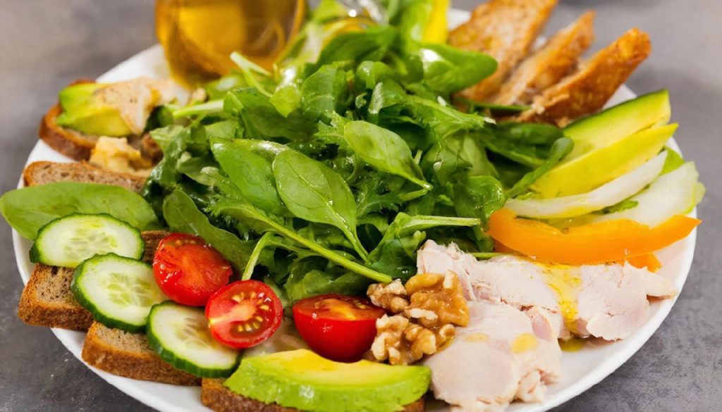 Необходимо употреблять в пищу больше свежих овощей и фруктов. В ежедневном рационе должны присутствовать продукты из цельных зёрен, бобовых и орехов.