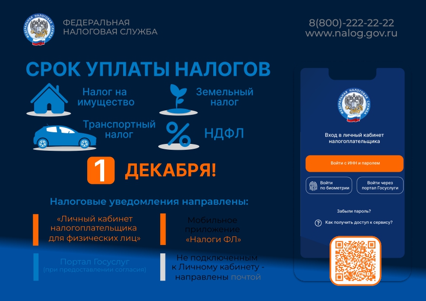 Федеральная налоговая служба напоминает жителям Ростовской области о сроках уплаты налогов.
